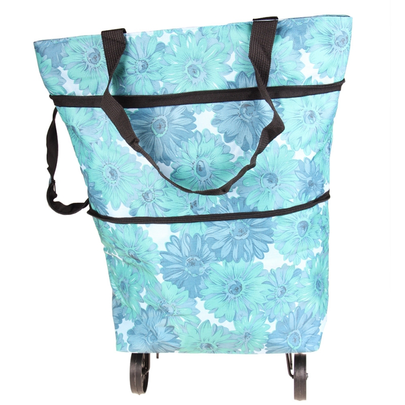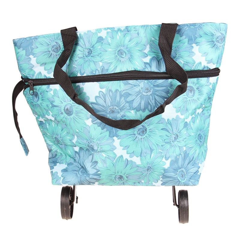 BEVÁSÁRLÓ TÁSKA KEREKEKKEL VIRÁGOS, KÉK