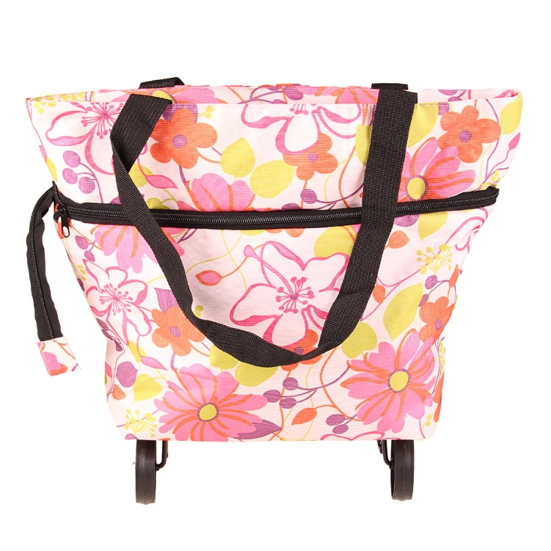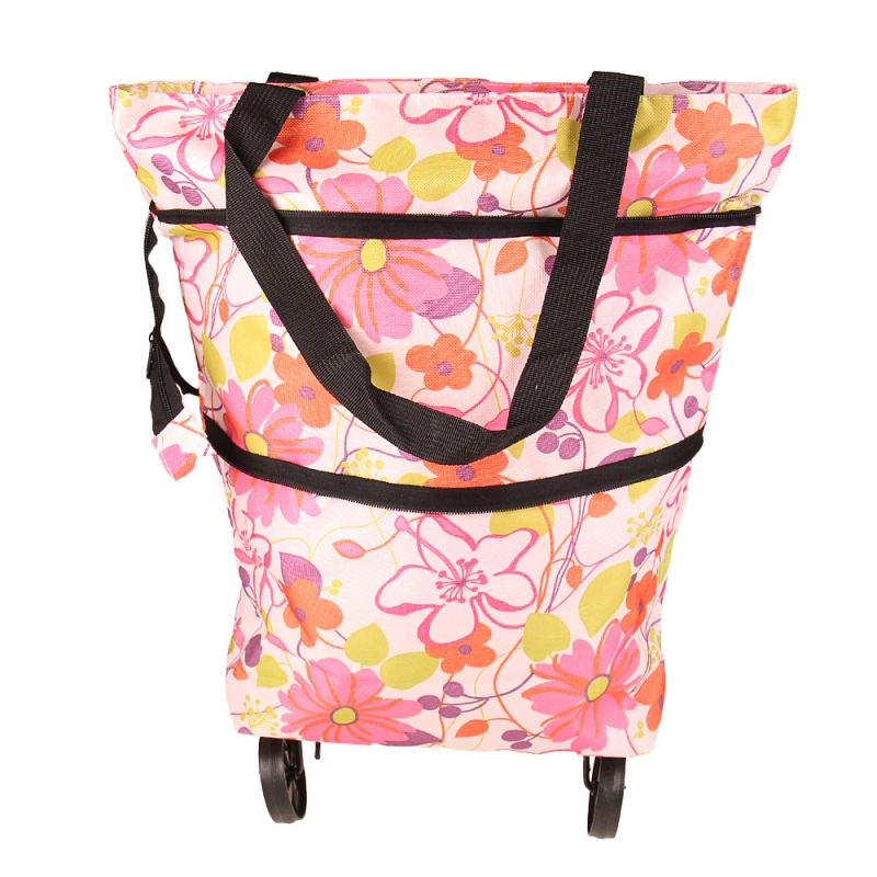 BEVÁSÁRLÓ TÁSKA KEREKEKKEL VIRÁGOS, RÓZSASZÍN