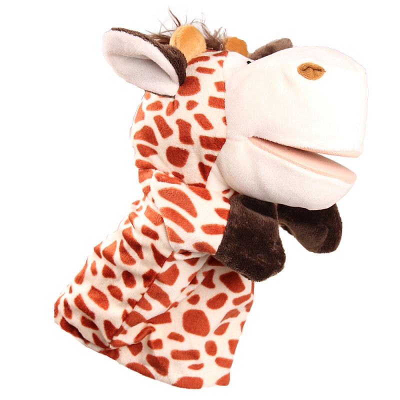 - Vidám állat formájú plüss kesztyűbáb