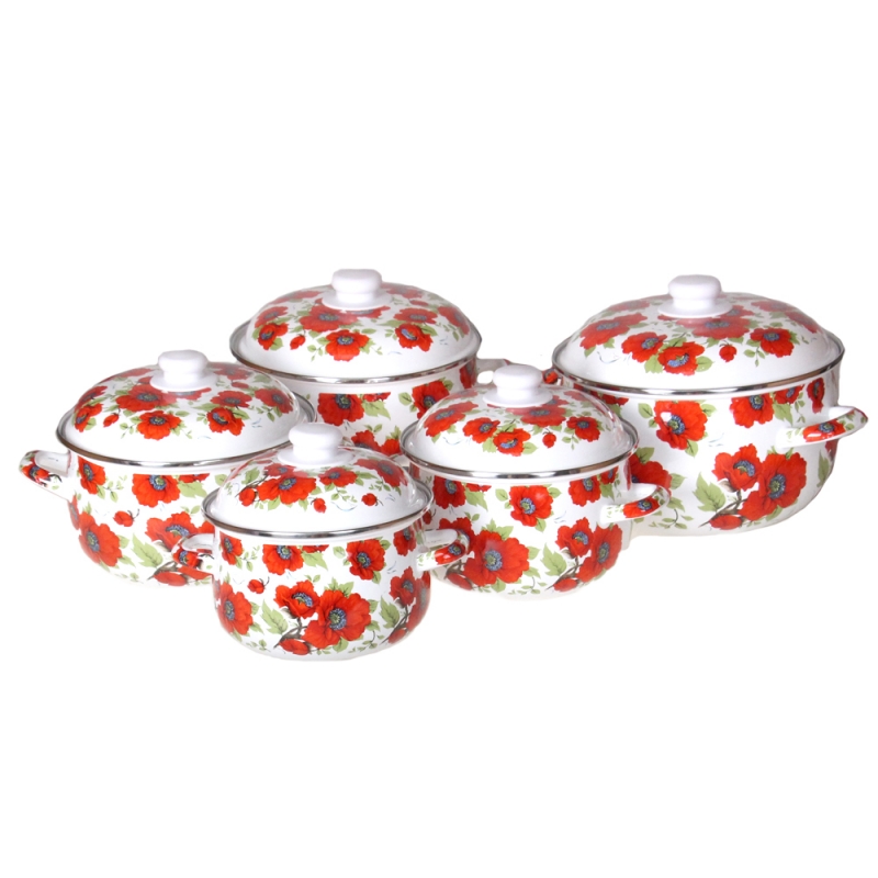 10- részes zománcozott edénykészlet pipacs