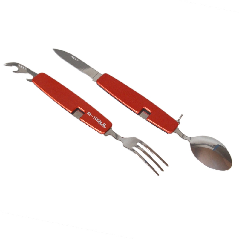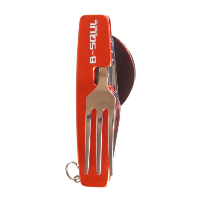 B-SQUL piros, összecsukható multifunkciós kemping evőeszköz