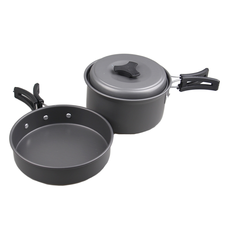 Kültéri főzéshez alkalmas konyhai edénykészlet.
